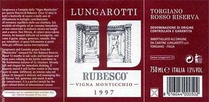 Lungarotti Rubesco Vigna Monticchio Torgiano Riserva 1997